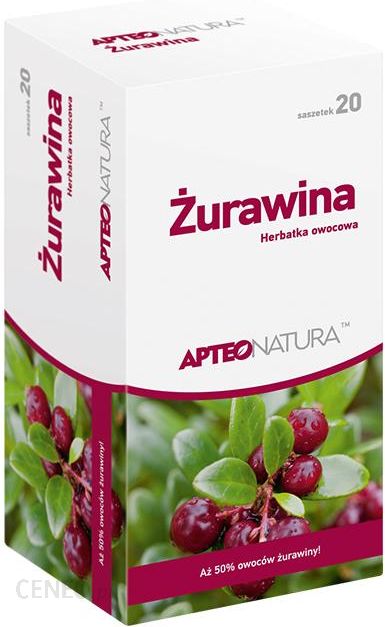 Żurawina fix APTEO NATURA 20 saszetekŻurawina fix APTEO NATURA to produkt, który wykazuje szereg dobroczynnych właściwości. Wielu z nasz kojarzy żurawinę jako pomoc we wsparciu dróg moczowych i ich infekcji nie wiedząc ,że owoc ten ma szereg innych bardzo ważnych wartości, ponieważ jest jednym z najbardziej prozdrowotnych owoców. Jedząc żurawinę zmniejszamy ryzyko zachorowania na choroby przyzębia i próchnicę, wrzody żołądka, infekcje dróg moczowych, a także choroby serca. Żurawina ze względu na swoje dobroczynne działanie dla zdrowia, powinna znaleźć się na stałe w naszej diecie. Pyszna herbatka żurawinowa to źródło cennych składników, które doskonale wpływają na funkcjonowanie organizmu.ŻURAWINA APTEO – AŻ 50% OWOCÓW!Żurawina stanowi bogate źródło witamin C, A, B1 i B2.W swoim składzie ma również wiele mikroelementów, potas , pektyny, błonnik i węglowodany. Substancje zawarte w żurawinie poprawiają odporność organizmu, wykazują działanie wzmacniające i przeciwgorączkowe. Żurawina doskonale radzi sobie z zakażeniami bakteryjnymi . Badania wykazały, że regularne picie soku z żurawin obniża poziom złego cholersterolu ( LDL ), a wspomaga wzrost poziomu dobrego cholesterolu ( HDL ). Ponadto żurawina doskonale wpływa na trawienie. Pobudza przemianę materii, usuwa toksyny, dlatego można ją z powodzeniem polecić tym , którzy zmagają się ze zbędnymi kilogramami. Żurawina sprawdzi się też w leczeniu chorób przyzębia i jamy ustnej, ponieważ przeciwdziała bakteriom w jamie ustnej i zapobiega tworzeniu się płytki nazębnej. Żurawina zmniejsza również ryzyko rozwoju chorób naczyń krwionośnych.Wskazanie: urozmaicenie codziennej diety.Sposób użycia: Zalecana dzienna porcja: 1 saszetka. Jedną saszetkę zalać wrzącą wodą, parzyć przez około 7-10 minut. Nie przekraczać zalecanej porcji do spożycia w ciągu dnia.Składniki: owoc żurawiny wielkoowocowej (Vaccinium macrocarpon) 50%, kwiat hibiskusa (Hibiscus sabdariffa L.), ziele mięty (Mentha piperita L.), skórka dzikiej róży (Rosa canina L.), owoc czarnej porzeczki (Ribes nigrum L.), owoc tarniny (Prunus spinosa L.)Produkt posiada długą datę ważności.Już teraz dołącz do zadowolonego grona naszych Klientów!