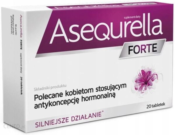 Nowa Asequrella Forte polecana jest kobietom stosującym antykoncepcję hormonalną lub hormonalną terapię zastępczą. Asequrella Forte to kompozycja aż 9 składników, które pomagają:kontrolować wagęstymulować popęd seksualnyusuwać nadmiar wody z organizmuzachować zdrową wątrobęredukować cellulitDzięki wzbogaconemu składowi suplement diety Asequrella Forte stanowi silniejszą osłonę podczas stosowania antykoncepcji*.