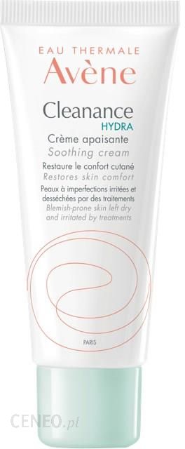 Avene Cleanance Hydra Krem łagodzący 40mlSkóra skłonna do niedoskonałości, wysuszonej i podrażnionej wskutek postępowania farmakologicznego.  Koi, nawilża i odżywia skórę wrażliwą i wysuszoną w wyniku kuracji przeciwtrądzikowych. Przywraca komfort skóry.Cleanance Hydra Krem łagodzący jest szczególnie polecany do skóry podrażnionej i wysuszonej przez stosowanie produktów leczniczych.