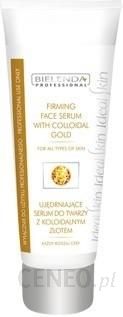 Bielenda ujędrniające serum do twarzy z koloidalnym złotem, każdy rodzaj cery(Firming Face Serum with Colloidal Gold for All Types of Skin)Udoskonala i wzbogaca wszelkie zabiegi na twarz, szyję i dekolt, dla kobiet i mężczyzn w każdym wieku.Działanie:- pobudza naturalną witalność komórek,- hamuje proces powstawania zmarszczek,- wygładza i spłyca zmarszczki już istniejące,- zwiększa sprężystość i elastyczność naskórka,- likwiduje przebarwienia i wyrównuje koloryt skóry,- daje efekt rozświetlonej, pełnej blasku cery.Składniki aktywne:KOLOIDALNE ZŁOTO – przenika przez epidermę i stymuluje komórki skóry do odnowy, pobudza je do produkcji kolagenu i elastyny, ujędrnia, liftinguje i optymalnie nawilża skórę, działa antyrodnikowo. Rozjaśnia, przywracając skórze piękny koloryt.KAWIOR – niezwykle bogate źródło protein i witamin: A, D, E i B, oligoelementów i jodu, niezbędnych do prawidłowego wzrostu tkanek. Zawarte w kawiorze fosfolipidy i fosfor pobudzają regenerację naskórka. Kawior wykazuje intensywne działanie nawilżające i ujędrniające. Poprawia sprężystość i kondycję skóry.ALGI CZERWONE – o nadzwyczajnych właściwościach nawilżających i kondycjonujących skórę.Sposób użycia:Do stosowania na twarz, szyję i dekolt, pod maskę algową KOLOIDALNE ZŁOTO, na zakończenie zabiegów, dla uzyskania rozświetlonej i pełnej blasku skóry.Pojemność: 50 mlBIELENDA PROFESSIONALFirmaistnieje od 1990 roku. Produkuje najwyższej jakości naturalne kosmetyki do pielęgnacji twarzy i ciała. Jest nowoczesną firmą, która od początku swojego istnienia jest wierna przekonaniu, że najbardziej kompleksową, a zarazem bezpieczną i przyjazną skórze pielęgnację zapewniają kosmetyki oparte na naturalnych składnikach aktywnych.W ofercie firmy znajduje się ponad 400 najwyższej jakości produktów skierowanych zarówno do Klienta indywidualnego, jak i odbiorców profesjonalnych – gabinetów kosmetycznych, szkół, ośrodków odnowy biologicznej oraz Wellness & Spa, dla których przygotowaliśmy kompleksową linię kosmetyków profesjonalnych.Preparaty BIELENDA Professional zyskały uznanie rynku kosmetycznego i zostały uhonorowane wieloma nagrodami branżowymi.Wszystkie kosmetyki od momentu pomysłu do finalnego produktu powstają w siedzibie firmy w Krakowie. W Dziale Badawczo – Rozwojowym, zespół kreatywnych technologów i kosmetologów w oparciu o obowiązujące trendy opracowuje coraz doskonalsze receptury.BIELENDA Professional oferuje swoim Klientom szeroką gamę produktów do zabiegów kosmetycznych oraz preparaty do codziennej pielęgnacji domowej. Kosmetyki te pozwalają zachować atrakcyjny wygląd oraz harmonię pomiędzy ciałem, duchem i umysłem.