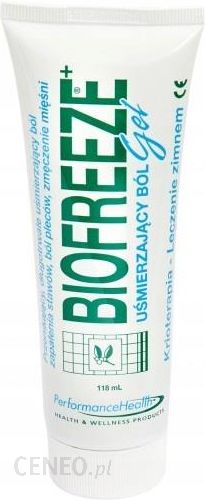Wskazania: dla złagodzenia dolegliwości takich jak: bóle mięśni, stawów, zwichnięcia, skręcenia, bóle pleców oraz zapalenia stawów; dla dorosłych i dzieci powyżej 2. roku życia.Przeciwwskazania: Nie stosować przy nadwrażliwości na którykolwiek ze składników preparatu.Uwaga: w przypadku dzieci poniżej 2. lat, kobiet w ciąży, bardzo wrażliwej skóry i skóry alergicznej użycie preparatu należy skonsultować z lekarzem.Działanie: BIOFREEZE to maść w postaci żelu, na bazie naturalnych składników, bez dodatku oleju i wosku, który głęboko penetruje bolące miejsca. Działa przeciwbólowo poprzez chłodzenie – mrożenie mięśni i stawów, co daje odczuwalną i przyjemną ulgę obolałym miejscom. Skutecznie łagodzi bóle mięśni i stawów, pogłębia naturalny proces gojenia. Pomaga w leczeniu: kontuzji, zapalenia stawów, sztywności mięśni i skurczy, zwichnięć, bólu pleców, sztywności ramion i karku, bolesności kostek, kolan, bioder i stawów łokciowych. Nie brudzi, nie pozostawia plam, przyjemny zapach aromaterapii, szybko się wchłania. Działa do kilku godzin od nałożenia.Skład: Substancja aktywna: alkohol izopropylowy; substancje pomocnicze: woda, ekstrat ziołowy (ilex paraguariensis – ostrokrzew paragwajski), carbomer,trietanoloaminy, mentol, kamfora, dwutlenek krzemu, metyloparaben, gliceryna, glikol propylenowy, żółty- wzmacniacz koloru,niebieski-wzmacniacz koloru.Zawartość opakowania: 118 mlDawkowanie: do użytku zewnętrznego; stosować maksymalnie 3-4 razy dziennie w miejscach dotkniętych bólem. Nałożyć cienką warstwę i wetrzeć w miejsca bolące (masaż nie jest konieczny). Przemyć ręce zimną wodą. Unikać kontaktu z oczami i błoną śluzową. Nie stosować na rany i uszkodzoną skórę. Nie używać z innymi maściami i wyrobami medycznymi.Podmiot odpowiedzialny: Performance Health, LLc, 1245 Home Avenue, Akron, OH 44310Informacja o produkcie: Performance Health, LLc, 1245 Home Avenue, Akron, OH 44310Informacje dodatkowe: Przed użyciem zapoznaj się z ulotką dołączoną do opakowania, która zawiera wskazania, przeciwwskazania, dane dotyczące działań niepożądanych i dawkowanie oraz informacje dotyczące stosowania i przechowywania produktu leczniczego, bądź skonsultuj się z lekarzem lub farmaceutą, gdyż każdy lek niewłaściwie stosowany zagraża Twojemu życiu lub zdrowiu.