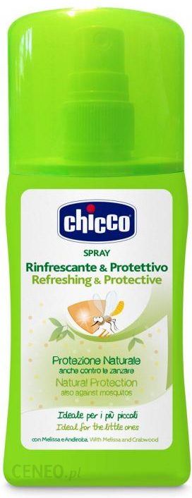 Preparat łagodnie chronią delikatną skórę. Działanie oparte jest o Citrodiol, wyciąg z australijskiego gatunku eukaliptusa. Citrodiol jest powszechnie znany ze swoich odstraszających insekty właściwości. Jest jednym z najpopularniejszych w świecie, naturalnych, skutecznych składników stosowanych w tego typu preparatach. Produkty z linii odstraszającej komary zostały przebadane dermatologicznie. Nie zawierają alkoholu, barwników ani parabenów. Nie zawierają DEET, który jest głównym czynnym składnikiem większości dostępnych preparatów, ale stosowanie którego, nawet w niewielkich ilościach, nie jest zalecane, zwłaszcza dla dzieci poniżej 2 roku życia. Preparaty Chicco są odpowiednie dla dzieci już od 3 miesiąca życia, a także dla kobiet w ciąży. Cechuje je przedłużone działanie, do 3 godzin po jednorazowym nałożeniu. Chroni przed wszelkiego typu komarami, w tym przed najbardziej drażniącym i coraz częściej występującym azjatyckim komarem tygrysim. W dzień i w nocy.Chicco Spray przeciw komarom chroni dziecko przed ukąszeniami owadów. Opakowanie jest tak zaprojektowane, że spray można rozpylać trzymając butelkę w dowolnej pozycji, nawet do góry dnem. To bardzo ułatwia aplikację w trudno dostępnych miejscach.
