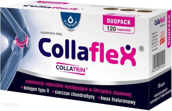 Collaflex zawiera w swoim składzie unikalny, opatentowany składnik BioCell Collagen II® będący skoncentrowanym źródłem składników macierzy międzykomórkowej budujących tkankę chrzęstną: siarczanu chondroityny, hydrolizowanego kolagenu typu II oraz kwasu hialuronowego.Siarczan chondroityny wpływa korzystnie na utrzymanie stawów w dobrej kondycji. Pomaga utrzymać prawidłową elastyczność tkanki chrzęstnej, umożliwiając w ten sposób stawom odpowiednią ruchomość.Kolagen typu II to najpowszechniej występująca forma kolagenu w organizmie. Jest on odpornym na rozciąganie białkiem tkanki łącznej. Stanowi główny składnik chrząstek i ścięgien oraz odpowiada za utrzymanie odpowiedniej elastyczności skóry.