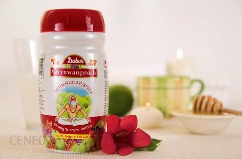 Chyawanprash – regenerująca ajurwedyjska pasta ziołowa dla całej rodziny – dla osób w każdym wieku. Od tysiącleci rodziny w Indiach i na całym świecie cieszą się ziołową formułą Chyawanprash.Ta ajurwedyjska pasta jest unikatową kombinacją ponad 49 najcenniejszych ziół i srebra połączonych z niezwykle bogatym w witaminę C owocem amla. Dzięki temu jest on najlepszym ziołowym ajurwedyjskim preparatem, który odżywia i wzmacnia ciało, dostarczając energii i witalności.Składniki Chyawanprash mają 30 razy więcej witaminy C niż pomarańcza. Regularne stosowanie Chyawanprash wspiera działanie systemu immunologicznego oraz zwiększa odporność na stres. Chyawanaprash jest robiony pod ścisłą kontrolą z ponadwiekowej ajurwedyjskiej receptury, co daje gwarancję produktu najwyższej jakości. Właściwości pasty pozostają niezmienione od lat.Właściwości: wzmacnia siły obronne organizmu zmniejsza skutki stresu i chroniczne zmęczenie wspiera oczyszczanie organizmu z toksyn polepsza pracę układu pokarmowego poprawia cerę i porost włosów obniża poziom cholesterolu posiada właściwości antyutleniające polepsza pracę mózgu, wzmacnia pamięć i ułatwia przyswajanie wiedzy normalizuje przemianę materii zalecany jako naturalny środek ogólnowzmacniający, regenerujący obniżone podstawowe funkcje organizmuKluczowe składniki:Amla (agrest indyjski/ Emblica officinalis ) – antyoksydant, najbogatsze naturalne źródło witaminy C, wzmacnia układ immunologiczny.Pippali (pieper longum) – wspomaga prawidłową pracę płuc.Karkatshringi (Pistacia integerrima) – zmniejsza podatność na stres.Kesar – dodaje energii, sprawia, że skóra wygląda zdrowo.Bedarikant (Ipomoeia digitata) – naturalnie poprawia metabolizm.Bala (Sida cordifolia) – poprawia wytrzymałość.Guduchi – sprawia, że jesteśmy mocniejsi fizycznie i mentalnie, odmładza nasz system immunologiczny.Satavari – działa wzmacniająco na całe ciało, dobroczynnie wpływa na wzrok.Ghee (klarowane masło) – wg. ajurwedy uznawany za jeden z najbardziej odżywczych produktów na świecie.Ashvaganda – reguluje funkcjonalność ciała, wspiera funkcje odpornościowe.Formuła zawiera jeszcze wiele innych niezwykle cennych ziół, m.in. kudzu, korę cynamonu, asparagus, olej sezamowy, gałkę muszkatołową, miód oraz inne.Kraj pochodzenia: UEA (Zjednoczone Emiraty Arabskie)Masa netto: 1000gLegenda nt. powstania produktu:Święty Mahabharata Chyawan w podeszłym wieku poślubił młodą i piękną córkę króla. Pewnego dnia do pustelni świętego Chyawan przyszli mędrcy i zadowoleni z jego gościny zaoferowali mu cudowny środek, po którym święty odzyskał młodość. Ten lek został nazwany jako ‘chyawanprash’ po imieniu Chyawan. ZASTOSOWANIE:Dabur Chyawanprash dostępny jest w formie brązowej pasty o konsystencji dżemu. Ma słodko-kwaśny posmak z delikatną ostrą nutą. Chyawanaprash może być spożywany jako samodzielny produkt lub jako smarowidło na różnego rodzaju pieczywo, krakersy etc. Niektórzy uwielbiają spożywać go w formie napoju, mieszając go z mlekiem. We wszystkich przypadkach zachowuje on swoje dobroczynne właściwości. Zalecane jest spożywanie 1-2 łyżeczek 2 razy dziennie (rano i wieczorem, przynajmniej 15 minut przed jedzeniem). Dzieci max. 1 łyżeczkę. Chyawanaprash firmy Dabur jest produktem naturalnym odpowiednim do codziennego stosowania. SKŁAD:Emblica officinalis (Emblic Myrobalan) Fruit, Sugar, Honey, Clarified Butter, Sesamum Indicum (Sesame) Oil, Piper Longum (Long Pepper) Fruit, Bambusa Bambos (Bamboo Manna), Elettaria cardamomum (Cardamom) Seed Syzygium aromaticum (Clove) Flower buds, Mesua ferrea (Cobras saffron) Stamen, Cinnamomum tamala (Leaf cinnamon) Leaf, Cinnamomum zeylanicum (Cinnamon) Stem Bark, Pueraria tuberosa (Indian Kudju) Root Tuber, Dioscorea bulbifera (Air potato) Root Tuber, Withania somnifera (Winter cherry) Root, Asparagus racemosus (Asparagus) Root, Aegle marmelos (Bengal quince) Root, Desmodium gangeticum (Sal leaf bush) Root, Gmelina arborea (Cashmere tree) Root, Oroxylum indicum (Indian Trumpet Flower) Root, Premna integrifolia (Headache tree) Root, Solanum indicum (Indian Nightshade) Root, Solanum xanthocarpum (Febrifuge plant) Root, Stereospermum suaveolens (Rose Flower fragrant) Root, Tribulus terrestris (Small Catrops) Fruit, Uraria picta (Urara Pitch) Root, Sida cardifolia (Country Mallow) Plant, Phaseolus trilobus (Wild Green Gram) Plant, Teramnus labialis (Horse Vine) Plant, Pistacia integerrima (Crabs claw) Galls, Phyllanthus niruri (Feather foll Plant) Plant, Leptadenia reticulata (Cork swallow wort) Root, Terminalia chebula (Chebulic Myrobalan) Pericarp, Tinospora cordifolia (Heart-leafed Moonseed) Stem, Curcuma Zedoaria (Zedoary) Rhizome, Boerhavia diffusa (Spreading Hogweed) plant, Nymphaea stellata (Blue Water Lily) Flower, Adhatoda vasica (Malabar Nut) Root, Glycyrrhiza glabra (Liquorice) Root, Maritima annua (Ice plant) Fruit, Vitis vinifera (Raisins) Dry Fruit, Inula racemosa (Irish root) Root, Santalum album (Sandalwood) Heart wood, Potassium Sorbate – E202.Alergeny: sezam, miódWartość odżywcza w 100g: wartość energetyczna 1360kJ / 325kcal; białko 1,26g; węglowodany 76g, w tym cukry 67g; tłuszcz 1,7g, w tym nasycone 0,7g; błonnik 0,7g; sód 0,03g