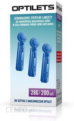 Zastosowanie: jednorazowe sterylne lancety do punktowego nakłuwania skóry w celu pobrania próbki krwi kapilarnej. Sposób użycia: Umyj ręce ciepłą wodą z mydłem i dobrze je osusz, wybierz miejsce nakłucia. Usuń nasadkę zabezpieczają, wprowadź lancet do nakłuwacza, wykonaj nakłucie. Wykonaj pomiar poziomu glukozy zgodnie z instrukcją, oczyść miejsce nakłucia, załóż nasadkę zabezpieczają i wyrzuć lancet do odpowiedniego pojemnika. Ważne wskazówki: NIE NALEŻY PONOWNIE UŻYWAĆ LANCETU. Użycie ponowne tej samej igły przez osoby trzecie wiąże się z podwyższonym ryzykiem zakażenia mikrobiologicznego. Przechowywać w temperaturze pokojkowej w miejscu niewidocznym i niedostępnym dla małych dzieci.