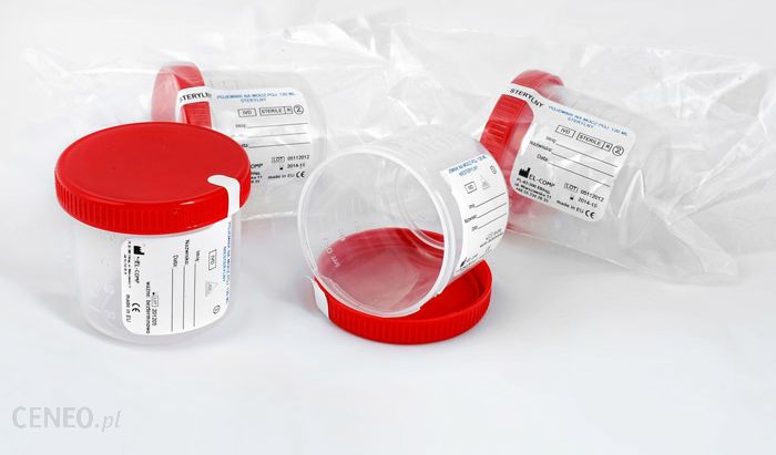 Nazwa: Pojemnik na mocz z naklejką zakręcany niesterylnyPostać: -Dawka: -Opakowanie: 120 mlSkład:Pojemnik na mocz poj. 120 ml niesterylny z naklejką, na której pacjent może wpisać swoje dane. Pojemnik zakręcany z plombą zabezpieczającą.