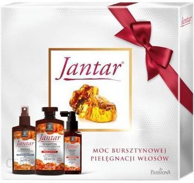 FARMONA JANTARZESTAW Seria kosmetyków Jantar inspirowana bogactwem natury, oparta na zaawansowanych bio-kompleksach roślinnych i wykorzystująca magiczną moc bursztynu. Produkty zawierają naturalny wyciąg z bursztynu, kompleks witamin A, E, F oraz Inutec – naturalny prebiotyk o doskonałych właściwościach kondycjonujących. Wyciąg z bursztynu pielęgnuje, wzmacnia i wygładza włosy. Szampon z wyciągiem z bursztynu i kompleksem witamin rodzaj skóry: do włosów z tendencją do przetłuszczania działanie: wzmacnia i wygładza włosy, zapobiega ich przetłuszczaniu Zawiera naturalny wyciąg z bursztynu, kompleks witamin A, E, F oraz Inutec – naturalny prebiotyk – o doskonałych właściwościach kondycjonujących. Wyciąg z bursztynu pielęgnuje, wzmacnia i wygładza włosy, równocześnie zapobiega ich przetłuszczaniu. Jako naturalny filtr słoneczny chroni przed szkodliwym działaniem środowiska. Po umyciu włosy stają się jedwabiste, miękkie, lśniące i podatne na układanie.Składniki aktywnewyciąg z bursztynu, kompleks witamin A, E, F, Inutec – naturalny prebiotykSkładniki INCIAqua (Water), Sodium Laureth Sulfate, Cocamide DEA, Cocamidopropyl Betaine, Sodium Chloride, Propylene Glycol, Amber Extract, Polysorbate 20, Retinyl Palmitate, Tocopherol, Linoleic Acid, PEG-20, Glyceryl Laurate, Inulin, Citric Acid, DMDM Hydantoin, Methylchloroisothiazolinone, Methylisothiazolinone, Parfum (Fragrance), Limonene.300ml Odżywka z bursztynem, stymulująca i wzmacniająca Receptura odżywki uwzględnia najistotniejsze potrzeby włosów cienkich, słabych, delikatnych i z tendencją do przetłuszczania. Zawiera biologicznie czynne substancje stymulujące wzrost włosów: Trichogen, Polyplant Hair, aktywny biologicznie wyciąg z bursztynu oraz witaminy A, E, F i d’pantenol. Odżywka Jantar hamuje wypadanie włosów, stymuluje ich wzrost i odżywianie. Zawarte w niej składniki są niezbędne do prawidłowego przebiegu procesów fizjologicznych skóry, jej odżywiania i regeneracji. Systematycznie stosowana poprawia metabolizm i dotlenienie cebulek włosów, regeneruje i łagodzi podrażnienia. Włosy stają się wyraźnie grubsze, lśniące i odporne na uszkodzenia. Odżywka wzmacnia strukturę włosów i chroni je przed szkodliwym wpływem środowiska i słońca. Wcierać codziennie w skórę głowy przez 3 tygodnie, po kilku dniach przerwy wznowić kurację. Nie spłukiwać. Składniki aktywne Trichogen®, Polyplant Hair®, aktywny biologicznie wyciąg z bursztynu oraz witaminy A, E, F i d’pantenol Składniki INCI Aqua (Water), Propylene Glycol, Glucose, Amber Extract, Hedera Helix (Ivy) Extract, Lamium Album (White Nettle) Extract, Arnica Montana (Mountain Arnica) Flower Extract, Chamomilla Recutita (Matricaria) Flower Extract, Arctium Majus (Burdock) Root Extract, Officinalis (Marigold) Flower Extract, Pinus Sylvestris (Pine) Bud Extract, Rosmarinus Officinalis (Rosemary) Leaf Extract, Salvia Officinalis (Sage) Leaf Extract, Nasturtium Officinale (Watercress) Extract, Calendula Tropaeolum Majus (Nasturtium) Flower Extract, Citrus Medica Limonum (Lemon) Peel Extract, Arginine, Biotin, Zinc Gluconate, Acetyl Tyrosine, Niacinamide, Panax Ginseng Root Extract, Hydrolyzed Soy Protein, Calcium Pantothenate, Ornithine HCI, Polyquaternium-11, Citrulline, PEG-12 Dimethicone, Glucosamine HCI, Panthenol, Glyceryl Laurate, Tocopherol, Linoleic Acid, Retinyl Palmitate, Polysorbate 20, PEG-20, Zinc PCA, Acrylates/C10-30 Alkyl Acrylate Crosspolymer, Triethanolamine, Diazolidinyl Urea, Iodopropynyl Butylcarbamate, Parfum (Fragrance), Hexyl Cinnamal, Limonene, Linalool. 100mlMgiełka do włosów pojemność: 200ml rodzaj skóry: włosy cienkie i suche działanie: chroni włosy przed szkodliwym działaniem słońca i zanieczyszczeniem środowiska, nawilża, odżywia i ułatwia rozczesywanie Nawilżająco-ochronna mgiełka do włosów zawiera aktywny wyciąg z bursztynu – naturalny filtr UV, który chroni włosy przed szkodliwym działaniem słońca i zanieczyszczeniem środowiska. Proteiny pszeniczne przylegając cienką warstwą do włosów, chronią je przed nadmiernym wysuszeniem, a także nawilżają, odżywiają i ułatwiają rozczesywanie włosów. Wyciąg z zielonej herbaty, cenne źródło mikroelementów, zapewnia doskonałe odżywienie skóry głowy i mieszków włosowych. Dodatkowo d-pantenol nawilża i stymuluje pęcznienie keratyny, przez co wyraźnie wzmacnia i pogrubia włosy oraz nadaje im piękny połysk. Suche lub wilgotne włosy spryskać z odległości 20-30 cm. Polecana podczas przebywania na słońcu i po solarium.