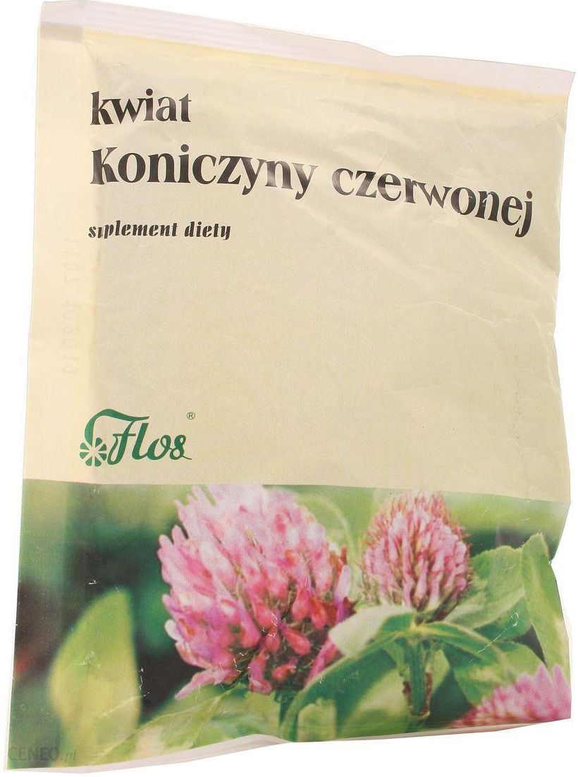 Koniczyna czerwona 25 saszetek (25×1,5g)Producent: Zakład Konfekcjonowania Ziół FLOS, Elżbieta i Jan Głąb spółka jawna, 98-345 Mokrsko 118index: FLO30Koniczyna czerwona 25 saszetek (25×1,5g)Sposób stosowania: 1 saszetkę produktu (1,5 g) zalać 1 filiżanką wrzącej wody. Pozostawić do zaparzania na 30 min. pod przykryciem. Świeży i ciepły napar pić 2 razy dziennie. Napar otrzymany z 3 g produktu stanowi dzienną porcję do spożycia. Nie należy przekraczać zalecanej porcji do spożycia w ciągu dnia. Suplementy diety nie mogą być stosowane jako substytut zróżnicowanej diety. Suplementy diety powinny być przechowywane w sposób niedostępny dla małych dzieci. Zalecany jest zrównoważony sposób żywienia i zdrowy tryb życia.UWAGA: Preparaty zawierające w swoim składzie koniczynę czerwoną nie powinny być stosowane przez kobiety w ciąży, karmiące piersią, z zaburzeniami gospodarki hormonalnej oraz z nowotworem piersi w wywiadzie osobistym lub rodzinnym.Przechowywać w suchym miejscu. Chronić od światła.Składniki: Wysuszone, rozdrobnione ziele i kwiat koniczyny czerwonej, syn. koniczyny łąkowej (Trifolium pratense L.) – 100%