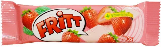 Dietetyczny środek spożywczyFRITT o smaku truskawkowym to rozpuszczalny cukierek z witaminą C.Składniki: syrop glukozowy, cukier, tłuszcze roślinne (palmowy, kokosowy, ziaren palmowych), żelatyna, regulator kwasowości (kwas cytrynowy), proszek truskawkowy (0,5%), naturalny aromat, witamina C, barwnik – (czerwień buraczana)Wartość odżywcza w 100g:- wartość energetyczna 1658kJ/393kcal,- tłuszcz 8,5g (w tym nasycone kwasy tłuszczowe 5,7g), węglowodany 77g (w tym cukry 50g), białko 2,0g, sól 1,0g, witamina C 150mg (187%)*.* RWS – Referencyjna Wartość Spożycia.Masa netto: 35g.Wyprodukowano w: Polsce.