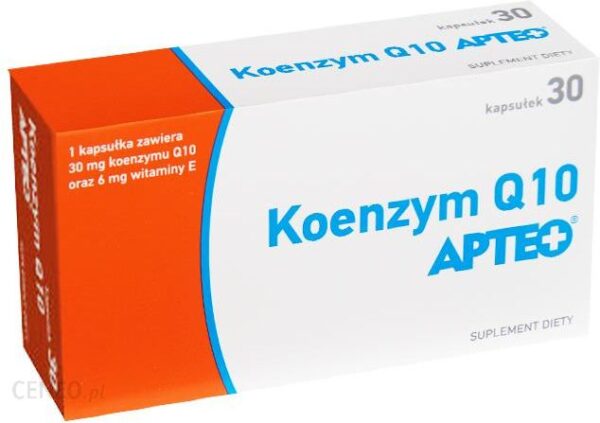 Koenzym Q10 to substancja witaminopodobna, wyizolowana w 1957 roku przez dr Fredericka Crane’a z mitochondrium komórek serca wołu. Koenzym Q10nazywany jest „cudowną witaminą”, gdyż przedłuża życie komórek. Najwięcej koenzymu Q10 znajduje się w komórkach zużywających dużo energii, a więc przede wszystkim w mięśniu sercowym. Koenzym Q10 uczestniczy we wszystkich procesach dostarczających organizmowi energii, utrzymuje sprawny układ odpornościowy, sprzyja utrzymaniu prawidłowego ciśnienia tętniczego i wydolności serca oraz opóźnia proces starzenia. Koenzym Q10 posiada również właściwości przeciwutleniające, dzięki czemu wspomaga ochronę organizmu przed szkodliwym działaniem wolnych rodników. Wyniki badań naukowych potwierdzają, że z wiekiem przy nadmiernym obciążeniu psychofizycznym dochodzi do znacznego obniżenia poziomu koenzymu Q10. Wtedy zalecane jest jego systematyczne uzupełnianie. Wskazania: Jako systematyczne uzupełnianie koenzymu Q10, przy nadmiernym obciążeniu psychofizycznym, pomocniczo w schorzeniach układu krążenia. zalecany jako uzupełnienie diety w otyłości, cukrzycy, parodontozie, zespole przewlekłego zmęczenia, dla sportowców wyczynowych, osób starszych. Dawkowanie: Doustnie. Koenzym Q 30 mg: 1-2 kapsułki dziennie. Preparat zaleca się przyjmować po posiłku. Suplement diety nie może być stosowany jako substytut zróżnicowanej diety. Nie należy przekraczać zalecanej do spożycia porcji w ciągu dnia. Przed zastosowaniem suplementu diety należy sprawdzić datę ważności podaną na opakowaniu (etykiecie). Nie należy go stosować po terminie ważności. Przechowuj preparat w miejscu niedostępnym i niewidocznym dla dzieci, zgodnie z wymogami producenta. Skład: Koenzym Q10 30 mg Witamina E 6 mg. Opakowanie : 30 kapsułek