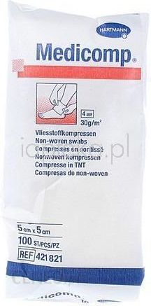 Postać Kompresy niejałowe Opakowanie 1 op 100 szt. (5cm x 5cm) Opis Kompresy gazowe niejałowe 8warstw 13-nitkowe 5 x 5cm 100sztuk Wskazania: Do ogólnego opatrywania ran przy zabiegach ambulatoryjnych i stacjo­narnych. Właściwości: Kompresy wykonane są z hydrofilowej gazy bawełnianej bielonej metodą bezchlorową. Dla zapewnienia pełnego bezpieczeństwa brzegi kompresów składane są do wewnątrz, co wyklucza ryzyko wysnucia się luźnych nitek.
