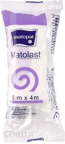 Bandaż elastyczny Matolast stosowany jako bandaż mocujący – bardziej komfortowa alternatywa dla bandaży nieelastycznych (dzianych i gazowych).Dla kogo przeznaczony jest produkt?W medycynie:dla pacjentów jako bandaż mocujący na stawach oraz prostych, stożkowych częściach ciałaW domu:dla dorosłych i dzieci jako bandaż mocujący na stawach oraz prostych, stożkowych częściach ciałaWłaściwości produktu:zapewnia przyleganie warstw do siebie – gwarantuje niezsuwanie się opatrunkunie uciska nadmiernie zabezpieczanych miejsc i nie ogranicza krążenia krwiposiada niestrzępiące się brzegi miękki, przyjemny dla skóryprodukt jednorazowego użytkuprzepuszczający powietrzeCechy produktu:elastyczność: elastycznyrozciągliwość: min. 130%rodzaj: mocującyskład: poliamid, wiskoza