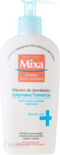 Zrób test!Czy Twoja skóra wysusza się w wyniku działania czynników zewnętrznych (zanieczyszczenia, zimno, twarda woda)?Czy Twoja skóra jest zaczerwieniona lub piecze podczas demakijażu?Czy Twoja skóra jest ściągnięta po spłukiwaniu wodą?Jeśli odpowiedziałeś „tak” na co najmniej 2 pytania, to produkt jest dla Ciebie.Nasze Mleczko do demakijażu Mixa Optymalna Tolerancja to lekka emulsja, która umożliwia skuteczny demakijaż w łagodny sposób bez konieczności pocierania. Dzięki temu idealnie odpowiada na potrzeby skóry bardzo wrażliwej i reaktywnej, ze skłonnością do reakcji alergicznych.Łagodny makijaż: formuła mleczka zawierająca olejki rozpuszcza makijaż. Wystarczy delikatnie oczyścić skórę wacikiem – bez konieczności pocierania.Wielka ulga: mleczko zawiera opatentowany kojący ekstrakt z róży. Skóra wrażliwa i skłonna do reakcji alergicznych zostaje ukojona i złagodzona.+ Skuteczność:Kojący ekstrakt z róży+ olejki zmywające makijaż- Ryzyko alergii:Skład dobrany tak, aby minimalizować ryzyko wystąpienia reakcji alergicznychTolerancja przetestowana na skórze wrażliwejOdczuwalne rezultaty! Skóra jest perfekcyjnie oczyszczona nawet z najdrobniejszych śladów makijażu. Zostaje złagodzona i nawilżona, dzięki czemu jest miękka i elastyczna.Zastosowanie: do cery wrażliwej, ze skłonnością do reakcji alergicznych. Nakładać opuszkami palców i pozwolić, aby makijaż – również wodoodporny – rozpuścił się w mleczku. Usunąć za pomocą wacika. Nie wymaga spłukiwania.O marceWe Francji od 1924 r. MixaNasza historia: skóra wrażliwa i farmacjaMarka Mixa narodziła się w 1924 r. we francuskich aptekach. Nasza pierwsza gama produktów została stworzona do pielęgnacji wrażliwej i delikatnej skóry niemowląt. W oparciu o tą ekspertyzę rozwinęliśmy nowe produkty do pielęgnacji twarzy i ciała kobiet w każdym wieku. Ich cechą wspólną jest skuteczność i troska o optymalną tolerancję skóry wrażliwej.Pozostałe informacjeFormuła stworzona pod kontrolą medycznąBez barwników, bez alkoholu** Dotyczy alkoholu etylowego.Zrób test!Czy Twoja skóra wysusza się w wyniku działania czynników zewnętrznych (zanieczyszczenia, zimno, twarda woda)?Czy Twoja skóra jest zaczerwieniona lub piecze podczas demakijażu?Czy Twoja skóra jest ściągnięta po spłukiwaniu wodą?Jeśli odpowiedziałeś „tak” na co najmniej 2 pytania, to produkt jest dla Ciebie.Nasze Mleczko do demakijażu Mixa Optymalna Tolerancja to lekka emulsja, która umożliwia skuteczny demakijaż w łagodny sposób bez konieczności pocierania. Dzięki temu idealnie odpowiada na potrzeby skóry bardzo wrażliwej i reaktywnej, ze skłonnością do reakcji alergicznych.Łagodny makijaż: formuła mleczka zawierająca olejki rozpuszcza makijaż. Wystarczy delikatnie oczyścić skórę wacikiem – bez konieczności pocierania.Wielka ulga: mleczko zawiera opatentowany kojący ekstrakt z róży. Skóra wrażliwa i skłonna do reakcji alergicznych zostaje ukojona i złagodzona.+ Skuteczność:Kojący ekstrakt z róży+ olejki zmywające makijaż- Ryzyko alergii:Skład dobrany tak, aby minimalizować ryzyko wystąpienia reakcji alergicznychTolerancja przetestowana na skórze wrażliwejOdczuwalne rezultaty! Skóra jest perfekcyjnie oczyszczona nawet z najdrobniejszych śladów makijażu. Zostaje złagodzona i nawilżona, dzięki czemu jest miękka i elastyczna.Zastosowanie: do cery wrażliwej, ze skłonnością do reakcji alergicznych. Nakładać opuszkami palców i pozwolić, aby makijaż – również wodoodporny – rozpuścił się w mleczku. Usunąć za pomocą wacika. Nie wymaga spłukiwania.O marceWe Francji od 1924 r. MixaNasza historia: skóra wrażliwa i farmacjaMarka Mixa narodziła się w 1924 r. we francuskich aptekach. Nasza pierwsza gama produktów została stworzona do pielęgnacji wrażliwej i delikatnej skóry niemowląt. W oparciu o tą ekspertyzę rozwinęliśmy nowe produkty do pielęgnacji twarzy i ciała kobiet w każdym wieku. Ich cechą wspólną jest skuteczność i troska o optymalną tolerancję skóry wrażliwej.Pozostałe informacjeFormuła stworzona pod kontrolą medycznąBez barwników, bez alkoholu** Dotyczy alkoholu etylowego.