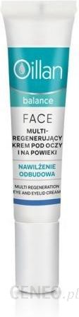 OILLAN BALANCE regenerujący krem dermatologiczny do skóry wrażliwej i alergicznej 40 ml + Żel pod oczy hydro – aktywny 15 ml:OILLAN BALANCE regenerujący krem dermatologiczny 40 ml:do skóry wrażliwej i alergicznejPRODUKT HIPOALERGICZNYPrzywraca fizjologiczną równowagę skóryPreparat może być stosowany u osób powyżej 3. roku życiaTestowany dermatologicznie z udziałem osób z alergicznymi chorobami skóryNie zawiera parabenów, barwników i kompozycji zapachowejpH fizjologiczneKrem wspomaga regenerację uszkodzonego naskórka oraz bardzo suchej i podrażnionej skóry. Sukralfat stymuluje odnowę komórkową, wykazuje właściwości gojące, przyspieszając proces regeneracji naskórka. Tlenek cynku, dzięki właściwościom antybakteryjnym, chroni przed infekcjami. Ekstrakt z liści aloesu działa przeciwzapalnie oraz koi podrażnienia i zaczerwienienia, przywracając komfort skórze. Kwas mlekowy intensywnie nawilża, redukując uczucie pieczenia i swędzenia. Witamina E chroni przed niekorzystnym działaniem czynników zewnętrznych.UWAGA! Konsystencja kremu przypomina peeling – wynika to z zawieszenia substancji aktywnych w emulsji (10%). Nanosząc na skórę krem należy delikatnie wklepać (nie pocierać skóry).Stosowanie:Nanieść cienką warstwę kremu na uprzednio oczyszczoną i osuszoną skórę.Pozostawić do wchłonięcia. Stosować dwa razy dziennie lub kilka razy w ciągu dnia – w zależności od potrzeb.Zalecenia:Przeznaczony do bardzo suchej skóry skłonnej do podrażnień i reakcji alergicznych. Do stosowania pielegnacyjnego w przebiegu schorzeń dermatologicznych (AZS, łuszczyca, wyprysk) oraz po zabiegach dermatologicznych i medycyny estetycznej (peelingi chemiczne, mikrodermabrazja, zabiegi laserowe, mezoterapia igłowa).Przeciwwskazania:Ostre stany zapalne skóry wymagające leczenia farmakologicznego lub nadwrażliwość na którykolwiek ze składników preparatu.Pojemność:40 mlHydro-aktywny żel pod oczy, 15 ml:Do cery suchej, odwodnionej i wrażliwejuzupełnia niedobór wody w naskórkuredukuje cienie i obrzękiwygładza i uelastyczniaŻel optymalnie nawilża oraz uelastycznia suchą, odwodnioną i wrażliwą skórę wokół oczu. Kwas hialuronowy wiążąc wodę w naskórku utrzymuje prawidłowy poziom nawilżenia skóry, chroniąc ją przed przesuszeniem. Centella Asiatica Leaf Extract uelastyczniają, wygładza zmarszczki i poprawia mikrokrążenie, niwelując cienie i obrzęki pod oczami. Alantoina łagodzi podrażnienia i zaczerwienienia.Stosowanie:Codziennie rano i wieczorem nanieść niewielką ilość żelu na skórę pod oczami, delikatnie wklepując opuszkami palców.Zalecenia:Przeznaczony do cery odwodnionej, skłonnej do podrażnień i reakcji alergicznych. Do stosowania pielęgnacyjnego w przebiegu schorzeń dermatologicznych (AZS, łuszczyca, trądzik, trądzik różowaty) oraz po zabiegach dermatologicznych i medycyny estetycznej.Pojemność:15 ml