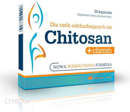 CHITOSAN + CHROM 30 KAPSUŁEKChitosan + chrom to suplement diety, który polecany jest przede wszystkim osobom aktywnym fizycznie, odchudzającym się, dążącym do redukcji tkanki tłuszczowej, pragnącym utrzymać obecną wagę.Dlaczego warto sięgnąć po suplement diety Chitosan + chrom?pomaga blokować wchłanianie tłuszczuwspiera prawidłowy metabolizm makroskładników odżywczychpomaga utrzymać odpowiedni poziom glukozy we krwipomaga hamować apetyt i ograniczać podjadanie pomiędzy posiłkamiskłada się z wyłącznie naturalnych składnikówChitosan to włókno wyodrębniane z pancerzy skorupiaków, posiadające właściwości żelujące i absorpcyjne. Jego główną funkcją jest blokowanie wchłaniania tłuszczu, dzięki czemu nie odkłada się on w organizmie. Działanie chitosanu nie wpływa na przyspieszenie spalenia tkanki tłuszczowej, a eliminację tłuszczu z układu pokarmowego.Chitosan w połączeniu z chromem, który pomaga ograniczać łaknienie, stanowią zgrany duet w walce o szczupłą sylwetkę. Dodatek wspomnianego chromu stanowi cenne wsparcie w procesie odchudzania. Pierwiastek ten m.in. wspomaga metabolizm makroskładników odżywczych, a także pomaga utrzymać odpowiedni poziom glukozy we krwi, co skutkuje ograniczeniem podjadania między posiłkami.Składniki zawarte w preparacie Chitosan + chrom w formie łatwych do połknięcia kapsułek zostały wielokrotnie przebadane pod kątem czystości przy użyciu innowacyjnej technologii. To sprawia, że suplement diety łączy w sobie farmaceutyczną jakość składników oraz bezpieczeństwo ich stosowania. Produkt doskonale więc spełnia swoją rolę w czasie kuracji odchudzającej. Przyjmowany zgodnie z zaleceniami producenta – Olimp Laboratories – nie powoduje uszczerbków na zdrowiu. Należy jednak pamiętać, że suplementu nie można traktować jako zamiennika zbilansowanej diety, a jedynie jej cenny dodatek.Składniki: chitosan (sproszkowane muszle skorupiaków morskich), substancja wypełniająca – celuloza mikrokrystaliczna, substancje przeciwzbrylające – sole magnezowe kwasów tłuszczowych, dwutlenek krzemu; pikolinian chromu, kapsułka (składnik otoczki – żelatyna, barwnik: E 171).Uwaga: Produkt zawiera składniki pochodzące ze skorupiaków.Informacja żywieniowa3 kapsułkiChitosan 1200 mgchrom 100 µg (250%*)*RWS – referencyjna wartość spożycia.Chitosan + chrom to suplement diety przeznaczony dla osób dorosłych, aktywnych fizycznie i dbających o kondycję, dążących do utrzymania prawidłowej wagi ciała, odchudzających się, chących pozbyć się nadmiaru tkanki tłuszczowej.Zalecana dzienna porcja: 1 kapsułka 3 razy dziennie, na ok. 20 min. przed posiłkiem, popijając minimum 1 szklanką wody.Nie należy przekraczać zalecanej porcji do spożycia w ciągu dnia. Suplement diety nie może być stosowany jako substytut zróżnicowanej diety. Zalecany jest zrównoważony sposób żywienia i zdrowy tryb życia.Uwaga: W okresie stosowania preparatu wskazane jest dodatkowe uzupełnianie diety w witaminy lipofilne: A, D i E, gdyż produkt może powodować zmniejszone wchłanianie tłuszczy z pokarmu. Preparaty witaminowe należy przyjmować na ok. 2 godz. przed lub po spożyciu chitosanu.