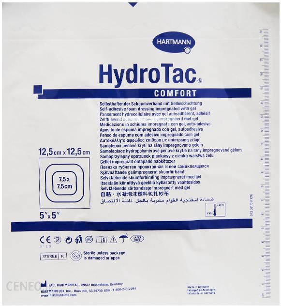 Zastosowanie: do zaopatrywania ran trudno gojących się, zarówno sączących jak i relatywnie suchych, w fazie ziarninowania i epitelializacji doskonale nadaje się do stosowania w połączeniu z terapią kompresyjną w przypadkach owrzodzeń podudzi pochodzenia żylnego.Charakterystyka:- HydroTac jest kombinacją opatrunku piankowego z hydrożelem,- podstawą opatrunku jest pianka poliuretanowa, warstwę opatrunku od strony rany stanowi hydrożel,- warstwa hydrożelu ma postać siatki, co pozwala na swobodne przejście wysięku do chłonnej warstwy piankowej,- pianka poliuretanowa szybko wchłania nadmiar wysięku rany i zamyka go w swojej strukturze. Nie oddaje go nawet pod wpływem terapii uciskowej,- hydrożel uwalnia wilgoć do rany utrzymując w niej wilgotne środowisko, sprzyjające ziarninowaniu i odbudowie nabłonka,- hydrożel zapobiega przyklejaniu się opatrunku do rany. Zmiany opatrunku przebiegają bezboleśnie,- warstwa hydrożelu daje opatrunkowi efekt początkowej przylepności „Initial Tack”. Dzięki temu zakładanie opatrunku staje się dużo prostsze,- od strony zewnętrznej opatrunek pokryty jest wodoodporną folią poliuretanową, chroni ranę przed wnikaniem drobnoustrojów chorobotwórczych, nie utrudnia jednak przepływu powierza i pary wodnej,- dodatkowo wyposażony w folię samoprzylepną, ułatwiającą mocowanie opatrunku na skórze.