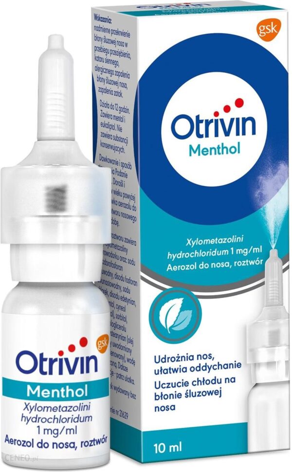 Aerozol do nosa Otrivin Menthol to ta sama, doskonale znana formuła na katar, ale wzbogacona mentolem i eukaliptolem. Lek został opracowany, by redukować nie tylko katar, ale także przekrwienie i obrzęk błony śluzowej nosa, a więc objawy, które towarzyszą przeziębieniu, zapalaniu zatok i alergiom. Formuła Otrivin Menthol zawiera chlorowodorek ksylometazoliny – substancję czynną, dzięki której produkt zmniejsza przekrwienie błon śluzowych oraz udrożnia nos i zatoki, a w efekcie ułatwia swobodniejsze oddychanie. Dzięki wzbogaceniu leku połączeniem dwóch substancji pomocniczych – mentolu i eukaliptolu – aerozol wywołuje także uczucie chłodu, które łagodzi dyskomfort odczuwany na błonach śluzowych, i pozwala łatwiej oddychać. Aerozol do nosa Otrivin Menthol jest odpowiedni dla dorosłych i dzieci powyżej 12. roku życia, a jego formuła zaczyna działać już po 2 minutach, oferując skuteczność aż do 12 godzin