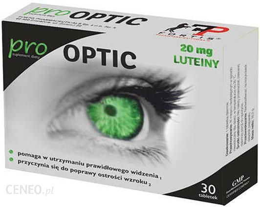 Suplement dietySuplement diety zawiera połączenie wyciągów roślinnych z aksamitka wzniesionego oraz borówki czarnej z rutyną, witaminami C i E oraz cynkiem, miedzią i selenem. Preparat charakteryzuje się wysoką zawartością luteiny i zeaksantyny, obecnych w wyciągu z aksamitka wzniesionego. Wyciąg z aksamitka wzniesionego przyczynia się do poprawy ostrości wzroku. Wyciąg z borówki czarnej oraz cynku pomaga w utrzymaniu prawidłowego widzenia. Zawarty w preparacie selen oraz witamina C i E przyczyniają się do ochrony przed stresem oksydacyjnym.Zastosowanie: usupełnienie diety w składniki wspierające prawidłowe widzenie.Zalecane spożycie: 1 tabletka dziennie.Składniki: celuloza mikrokrystaliczna (substancja wypełniająca), wyciąg z kwiatów aksamitka wzniesionego Tagetes erecta L. (w tym 20% luteiny i 4% zeaksantyny), wyciąg z borówki czarnej Vaccinium myrtillus L. (25% antocyjanów), kwas L-askorbinowy, rutyna, sole magnezowe kwasów tłuszczowych – stearynian magnezu (substancja przeciwzbrylająca), octan DL-alfa-tokoferolu, glukonian cynku, dwutlenek krzemu (substancja przeciwzbrylajaca), glukonian miedzi, selenin sodu.1 tabletka zawiera: wyciąg z kwiatów aksamitka wzniesionego Tagetes erecta L. 100mg (w tym 20% luteiny i 4% zeaksantyny), wyciąg z borówki czarnej Vaccinium myrtillus L. 50mg (25% antocyjanów), kwas L-askorbinowy 40mg (50%)*, rutyna 20mg, , witamina E 6mg (50%)*, cynk 5mg (50%)*, miedź 500mcg (50%)*, selen 27,5mcg (50%)*.*RWS – referencyjna wartość spożycia.Przeciwwskazania: nie należy stosować w przypadku nadwrażliwości na którykolwiek składnik preparatu.Ważne wskazówki:Nie przekraczać zalecanej porcji do spożycia w ciągu dnia.Produkt nie może być stosowany jako substytut zróżnicowanej diety i zdrowego trybu życia.Zrównoważony sposób żywienia prawidłowy tryb życia jest ważny dla funkcjonowania organizmu człowieka.Preparat należy przechowywać w suchym miejscu, w temperaturze pokojowej, w sposób niedostępny dla małych dzieci.Producent:Fortis Pharmaceuticals Sp. z o.o. Sp. k.ul. Mickiewicza 2940-085 Katowice