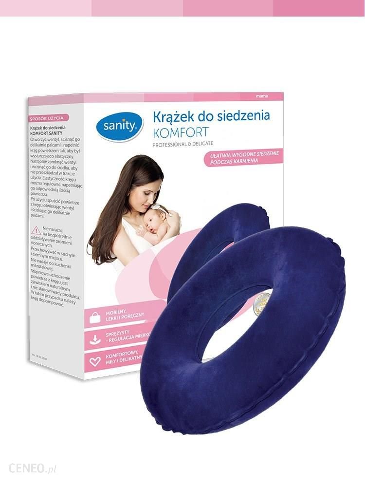 Wskazania i właściwości:Chroni bolące krocze kobiety przed uciskiem w okresie połogu. Zmniejsza ból podczas karmienia w pozycji siedzącej.Dodatkowo wyposażony w pokrowiec z dzianiny frotte, zapinany na zamek, co sprawia że łatwo go ściągnąć i wyprać.Opakowanie: 1 sztuka