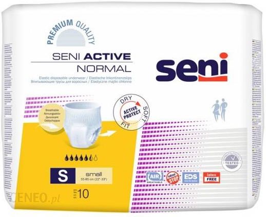 Majtki chłonne Seni Active Normal to oddychający wyrób stosowany zamiast zwykłej bielizny. Stworzone zostały z myślą o osobach aktywnych ze średnim nietrzymaniem moczu. Gwarantują dyskrecję i duży komfort użytkowania. Zapewniają wysokie poczucie suchości.