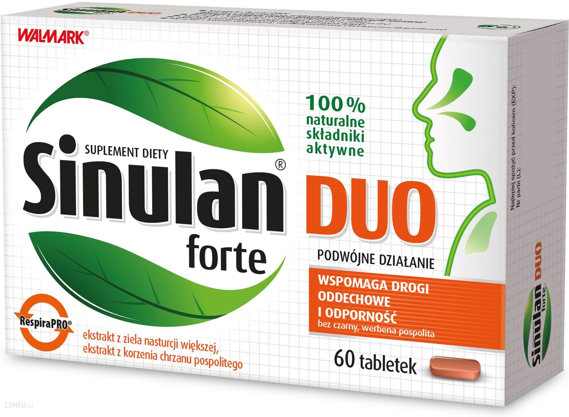 Sinulan Duo Forte to suplement diety zawierający kompozycję ekstraktów roślinnych, które dwutorowo wspomagają funkcjonowanie górnych i dolnych dróg oddechowych, a także układu odpornościowego.