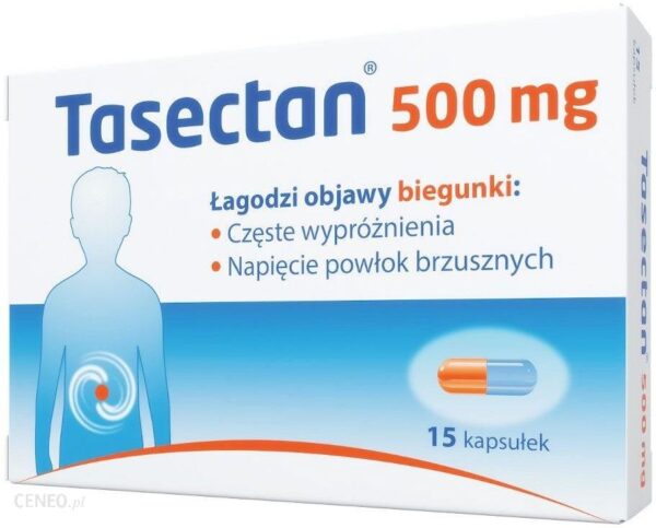 SZCZEGÓŁOWE INFORMACJE O WYROBIE MEDYCZNYM TASECTAN:Tasectan 500 mg preparat na biegunkę dla dorosłych i starszych dzieci, 15 kapsułek