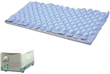 Zmiennociśnieniowy materac przeciwodleżynowy służy jedynie jako nakładka na typowy materac łóżkowy i musi być przykrywany prześcieradłem.Dwie specjalne komory materaca napełniane są naprzemiennie w celu zróżnicowania ciśnienia wywieranego przez leżącego pacjenta. Ciśnienie napełnienia materaca dostosowuje się do wagi użytkownika.Dane techniczne nakładki na materac:Materiał: PCVMinimalna waga użytkownikadla zachowania skuteczności materaca: 30 kgMaksymalna waga użytkownikadla zachowania skuteczności materaca: 120 kgWymiary po napompowaniu: 200 x 90 x 6,5 cm (długość bez zakładek).Dane techniczne kompresora 4,5 l:Obudowa z materiału ABSZakres regulacji ciśnienia: 30 do 110 mm HgCzas cyklu: 10 minutHaczyki umożliwiające zaczepienie kompresora na łóżku.