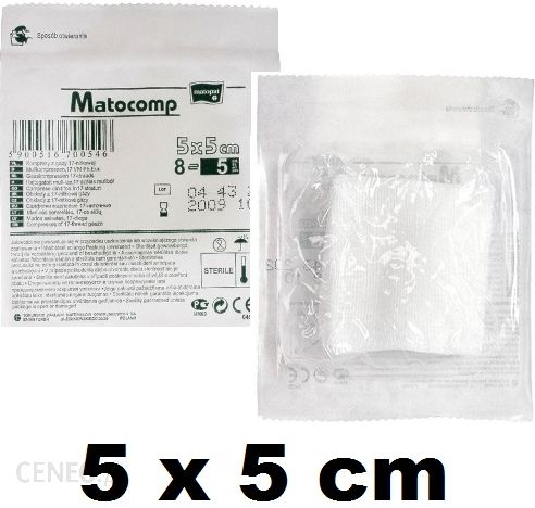 Kompresy z gazy Matocomp jałowe wykonane w 100% z gazy bawełnianej, stosowane do pochłaniania dużej ilości wilgoci i płynów ustrojowych w trakcie zabiegów i operacji. Najbardziej popularny produkt przy zmianie opatrunku.Dla kogo przeznaczony jest produkt?W praktyce lekarskiej:dla pielęgniarek i lekarzy wykonujących zabiegi diagnostyczne z udziałem płynów ustrojowych oraz krwi.W opiece długoterminowej:dla opiekunów do pochłaniania płynów, wilgoci i krwi przy zmianie opatrunku.W kosmetyce:dla kosmetyczek do celów higieniczno-kosmetycznych oraz do przemywania ciała po zabiegu.W domu:dla dorosłych i dzieci, do przemywania i opatrywania ran, skaleczeń i otarć oraz jako wkład chłonny zabezpieczający wilgotną ranę.Właściwości produktu:odpowiedni skręt nitki gwarantuje trwałość materiału oraz brak luźnych włókien na powierzchni kompresubielone bez użycia chloru, dzięki czemu są bezpieczne dla pacjenta, nie wywołują alergii oraz zapewniają wysoki poziom czystości chemicznejdla lepszego bezpieczeństwa brzegi składane do środka w sposób uniemożliwiający wysnucie luźnej nitki z kompresujałowe – sterylizowane parą wodnąbezpieczne opakowanie papierowo-foliowe