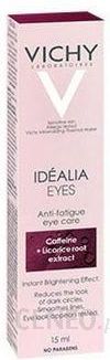 Idéalia z innowacyjnym w linii Vichy kompleksem DRM-Bright™ wspartym działaniem kofeiny, witaminy B3, kwasu LHA i kompozycji składników korygujących i rozświetlających. Bogata formuła kremu o lekkiej konsystencji działa aktywnie już od pierwszego użycia, by regenerować zniszczoną i suchą skórę, a także redukować widoczne na niej oznaki starzenia. Kompleks wnika w strukturę cery, by korygować i wypełniać zmarszczki, zmniejszać cienie i opuchnięcia, a także przywracać delikatnej skórze blask i naturalny wygląd. Odpowiedni do pielęgnacji wrażliwej cery wokół oczu, nie zawiera dodatku parabenu. Testowany dermatologicznie i pod kontrolą oftalmologiczną.Krem pod oczy Vichy Idéalia przeznaczony jest do codziennej pielęgnacji. Zaleca się go stosować rano i/lub wieczorem. Aplikator zbudowany z miękkiego, elastycznego silikonu. Zapewnia wyjątkowo precyzyjną i higieniczną aplikację, chroni formułę kremu aż do ostatniego stosowania.Krem należy aplikować na dokładnie oczyszczoną skórę.