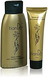 KosmeceutykaFirma TianDe łączy kosmetologię i farmaceutykę, zdecydowanie podnosząc skuteczność działania środków kosmetycznych. Kosmetyki TianDe – to biologicznie aktywny dodatek dla skóry, którego działanie jest porównywalne do działania terapeutycznego. Procentowa zawartość aktywnych składników wynosi 15-20%, czyli na poziomie środków specjalistycznych.Zestaw z ekstraktem z żeń-szenia składa się z szamponu i maski. Szampon odbudowuje uszkodzone włosy, wzmacnia ich cebulki, stymuluje wzrost, normalizuje czynność gruczołów łojowych, zapobiega występowaniu łupieżu. Zawiera ekstrakt z żeń-szenia i trawy Shou-Wu. Maska zaopatruje włosy w pełnowartościowy kompleks witamin odżywczych niezbędnych w okresie stresu, zabezpiecza przed utratą wilgoci i promieniowaniem UV. Zalecany do każdego rodzaju włosów niezależnie od wieku.Sposób użycia:Szampon nanosimy równomiernie na wilgotne włosy, pozostawiamy na 2-3 minuty następnie zmywamy. Na umyte wilgotne włosy równomiernie nanosimy maskę. Pozostawiamy na 2-3 minuty, dokładnie spłukujemy wodą.Wybrane składniki kosmetykuŻeń-szeń (Ginseng)Żeń-szeń nazywany także ginsengiem lub wszechlekiem. Korzeń ceniony w lecznictwie chińskim już od 4000 lat. Wyciąg z korzenia żeń-szenia wykorzystywany jest w przemyśle kosmetycznym z racji jego działań odmładzających. Posiada właściwości antyoksydacyjne, wykazuje działanie antynowotworowe. Stymuluje odnowę naskórka, przywraca skórze zakłóconą równowagę , świetnie tonizuje (zmniejsza napięcie powierzchniowe skóry), ujędrnia i odmładza, zapobiega łysieniu, rozdwajaniu się włosów, wzmacnia odporność, rewitalizuje, poprawia krążenie. Korzystnie wpływa na pracę gruczołów wydzielania wewnętrznego, opóźnia procesy starzenia.Rdest wielokwiatowy Shou-Wu (Polygonum Multiflorum)Komponent pozyskiwany z liści wijącego się wieloletniego pnącza trawiastego, rdestu wielkokwiatowego, rośliny z rodziny rdestowatych rozpowszechnionej w Azji Wschodniej (Chiny i Korea). Posiada działanie odmładzające, przeciwzapalne, antyoksydacyjne i tonizujące. Shou-Wu (z chińskiego – „niepozwalający siwieć”) wykazuje unikalną zdolność odbudowy naturalnego pigmentu włosów, stanowi uznany środek przeciw siwiźnie i łamliwości włosów. Sprzyja regeneracji skóry, normalizuje wymianę pigmentacyjną (zmniejsza plamy pigmentacyjne), spowalnia procesy starzenia.Waga szamponu 220gWaga odżywki 100g