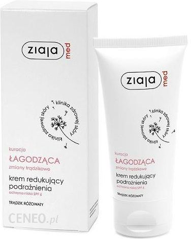 Lekka emulsja nawilżająca z wykorzystaniem ekologicznych surowców, bez kompozycji zapachowej. Wyraźnie wzmacnia barierę naskórkową. Obkurcza i uszczelnia ścianki naczynek krwionośnych. Działa rozjaśniająco na naskórek. Nawilża, zmiękcza oraz działa osłaniająco na nadmiernie wrażliwą skórę, daje wyraźny efekt łagodzenia podrażnień.WskazaniaZiaja Med Krem na trądzik różowaty polecany do cery naczynkowej i trądzikowej powyżej 12 roku życia.Działanie- Wyraźnie wzmacnia barierę naskórkową.- Obkurcza i uszczelnia ścianki naczynek krwionośnych.- Działa rozjaśniająco na naskórek.- Hamując aktywność 5 a-reduktazy redukuje wydzielanie sebum.- Skutecznie zapobiega zmianom grudkowo-krostkowym.- Zmniejsza nadreaktywność gruczołów łojowych.- Zapewnia skuteczną ochronę przed promieniowaniem UV.- Daje wyraźny efekt łagodzenia podrażnień.- Nawilża, zmiękcza oraz działa osłaniająco na nadmiernie wrażliwą skórę.PrzyjmowanieKrem nanieść na skórę twarzy, szyi i dekoltu, delikatnie wklepać. Polecany dla młodzieży i dorosłych.Składniki- Alantoina- Escyna- Filtry uva/ uvb organiczne- Kompleks proteinowo-cynkowy- Modyfikowana skrobia- Prowitamina B5 (D-panthenol)- TrokserutynaPREPARAT TESTOWANY DERMATOLOGICZNIE I ALERGOLOGICZNIE